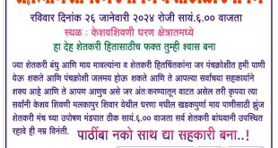 Read More »शेतीच्या बारमाही पाण्यासाठी 26 जानेवारी पासुन अन्नत्याग आमरण उपोषण