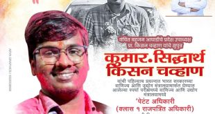 सिध्दार्थ किसन चव्हाण याचे हार्दिक अभिनंदन विशेष प्रतिनिधी-अविनाश देशमुख शेवगांव 9960051755 शेवगाव :- याबाबत सविस्तर वृत्त असे की शेवगाव शहरातील विद्यार्थी सिद्धार्थ किसन चव्हाण राहणार विद्यानगर याची भारतीय प्रशासन सेवा मध्ये नुकतीच निवड झाली म्हणतात ना कोशीश करनेवाले की कभी हार नहीं होती डॉ बाबासाहेब आंबेडकर म्हणतात या देशाची शासनकर्ती …